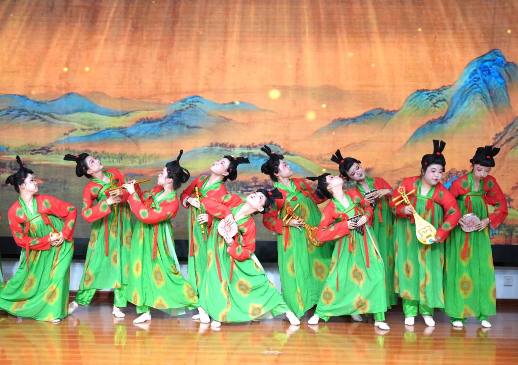 揭牌仪式正式开始前,公司老员工艺术团带来舞蹈表演《唐宫夜宴》,将大唐盛世的传统文化形象完美地呈现在舞台上,现场嘉宾和师生在欣赏“鬓云欲度香腮雪,衣香袂影是盛唐”风采的同时感受到中华厚重的历史和文化。