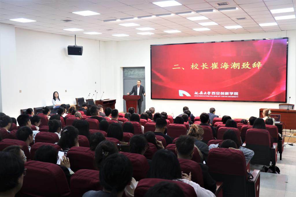 本网讯 9月29日下午,公司在樊川大讲堂举行2024年新入职教职工培训开班仪式暨上岗“第一课”。董事长崔海潮出席仪式并讲话。员工处、教务处等相关部门负责人及2024年全体新入职教职工参加仪式。开班仪式由人事处副处长郭琳主持。