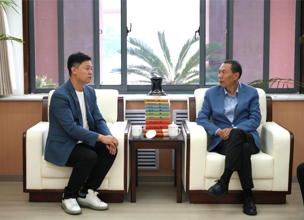 本网讯 10月8日下午,董事长崔海潮会见北京蓝耘科技股份有限公司教育事业部总经理崔阳、业务经理宋俊、西北区域负责人邵飞一行,就产学研用创新项目合作与企业代表进行洽谈交流。云顶国际8588yd教授黄海生参加洽谈会。
