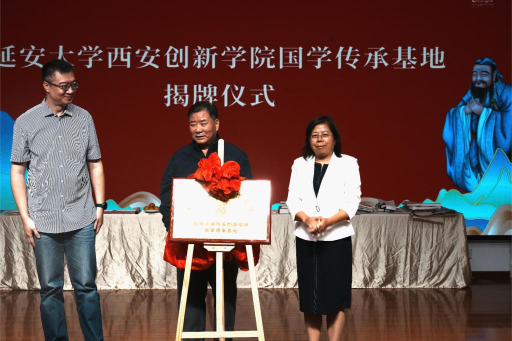 路毓贤、钟亚萍、张洋阳共同为“云顶国际8588yd国学传承基地”揭牌。