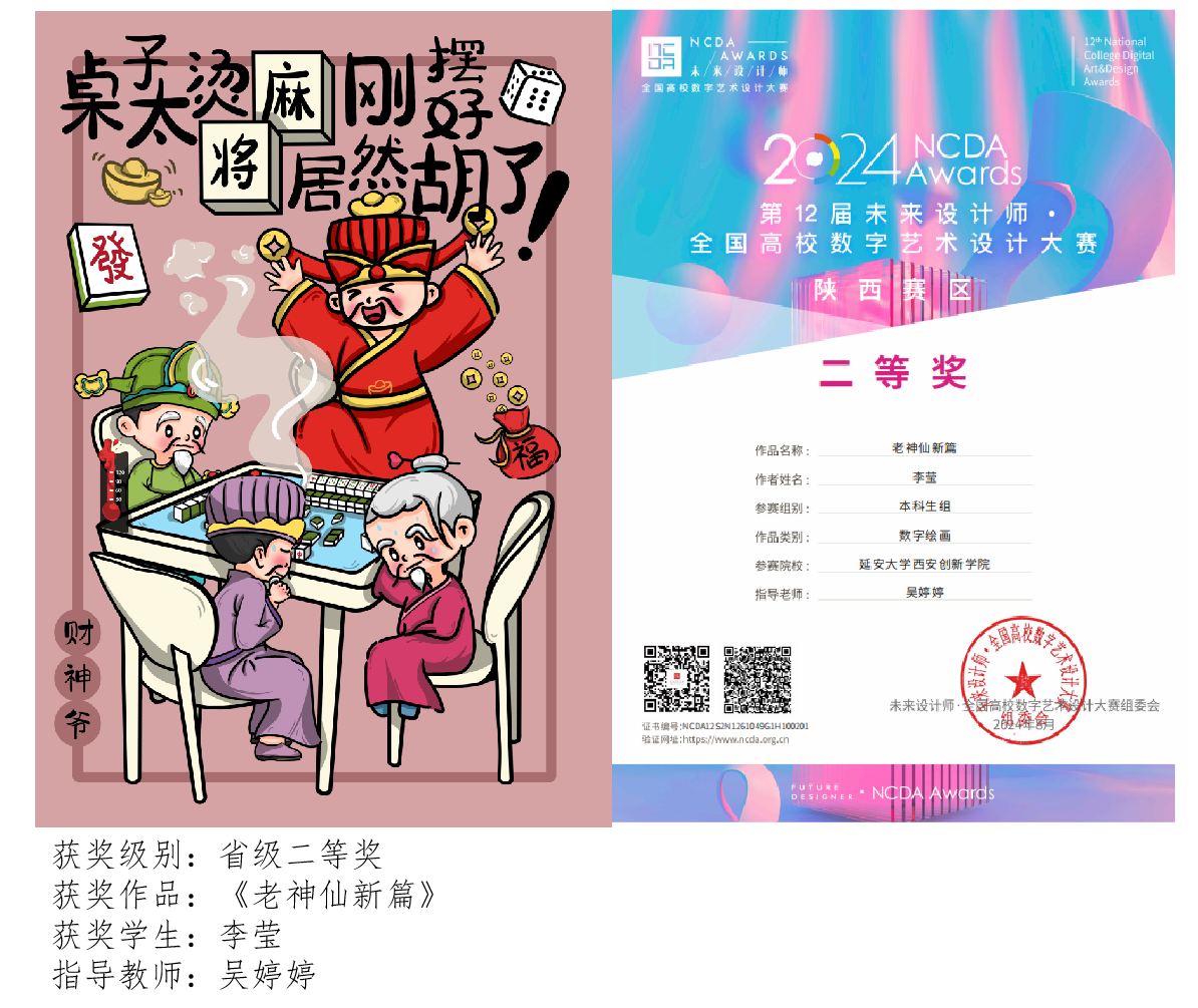 18.中国好创意暨全国数字艺术设计大赛荣获一等奖1项,二等奖1项,三等奖4项,特殊贡献奖1项。