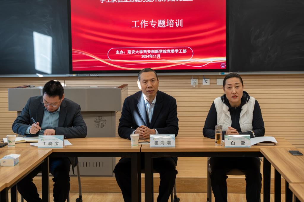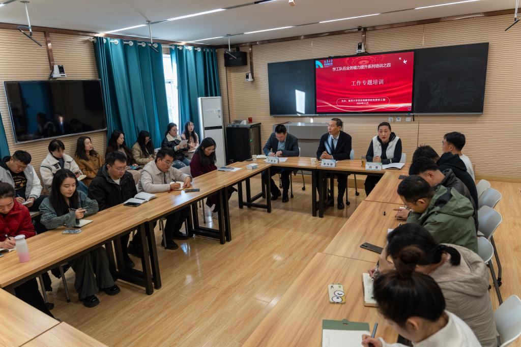 白雪对全体辅导员提出三点要求:一是要强化主人翁意识,提高政治站位,不断创新工作方法;二是要充分了解每一位员工,做到工作底数清、情况明,工作有抓手有力度;三是要重视就业工作,从大一开始就引导员工做好自己的职业规划。