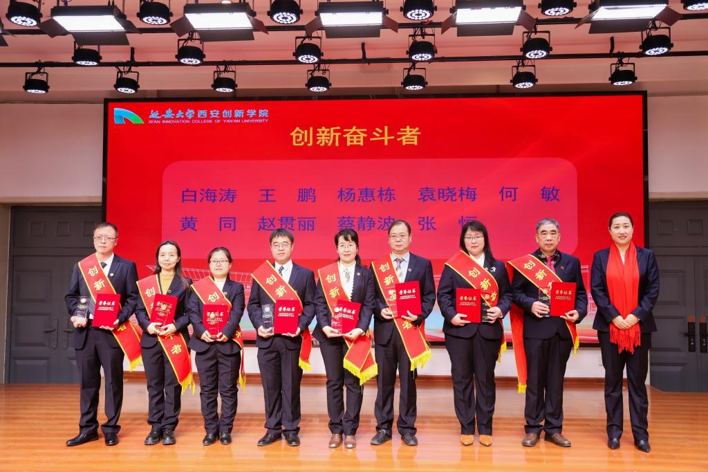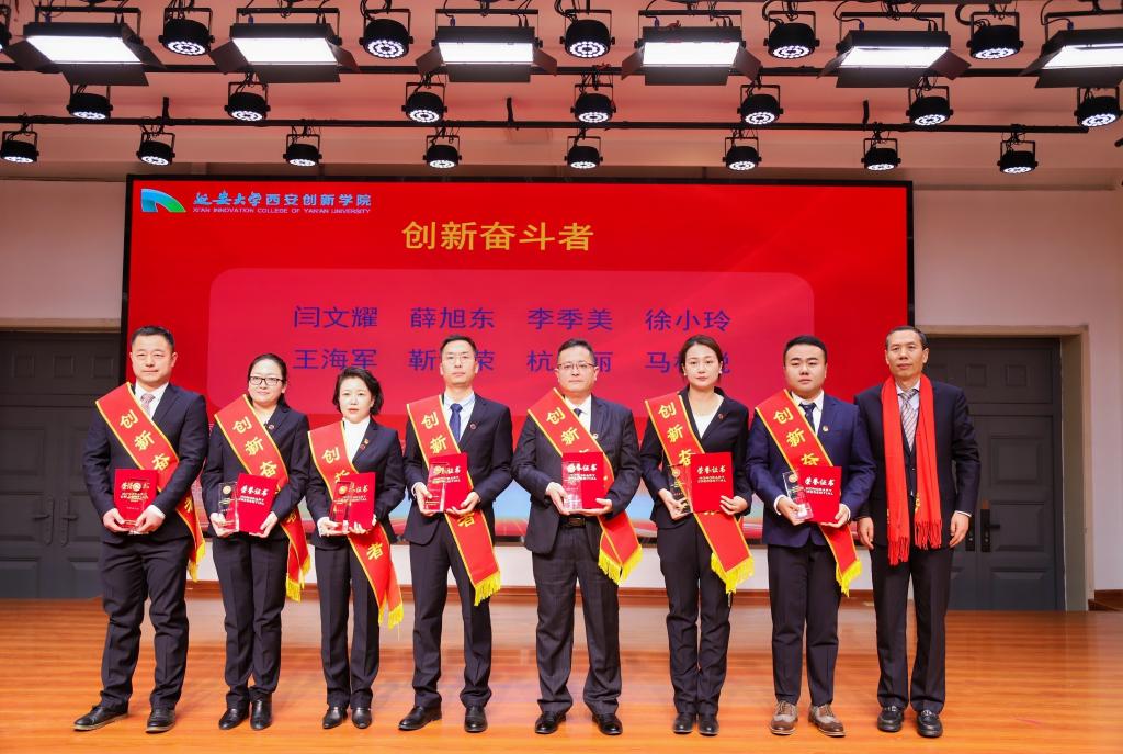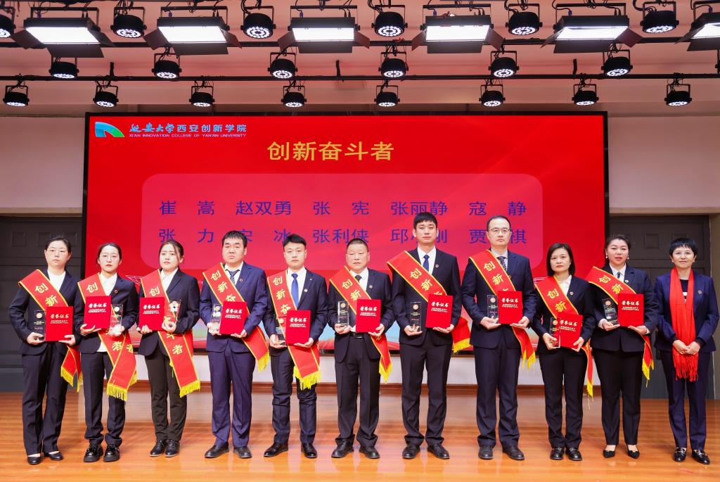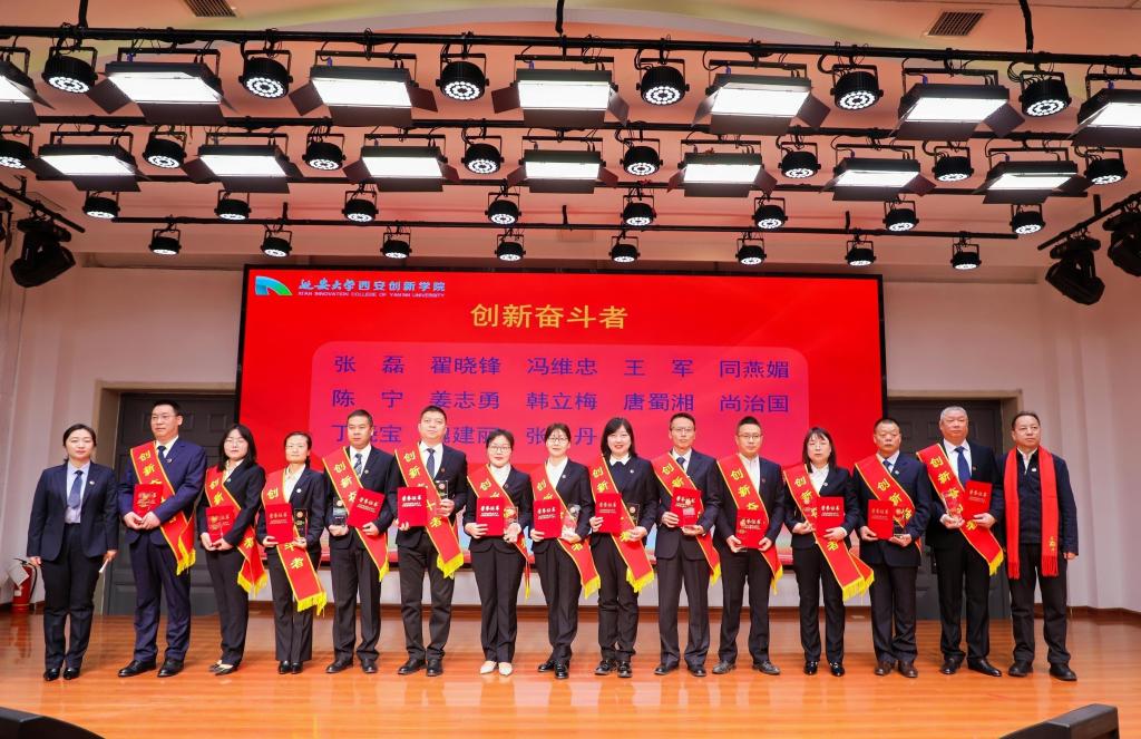 随后,庆典大会进行了隆重的表彰仪式,为张磊、白海涛、赵双勇、薛旭东等40位恪尽职守、勤勉工作,在创新奉献热情与青春的教职工颁发了“创新奋斗者奖”,为11位员工颁发了“优秀员工奖”。