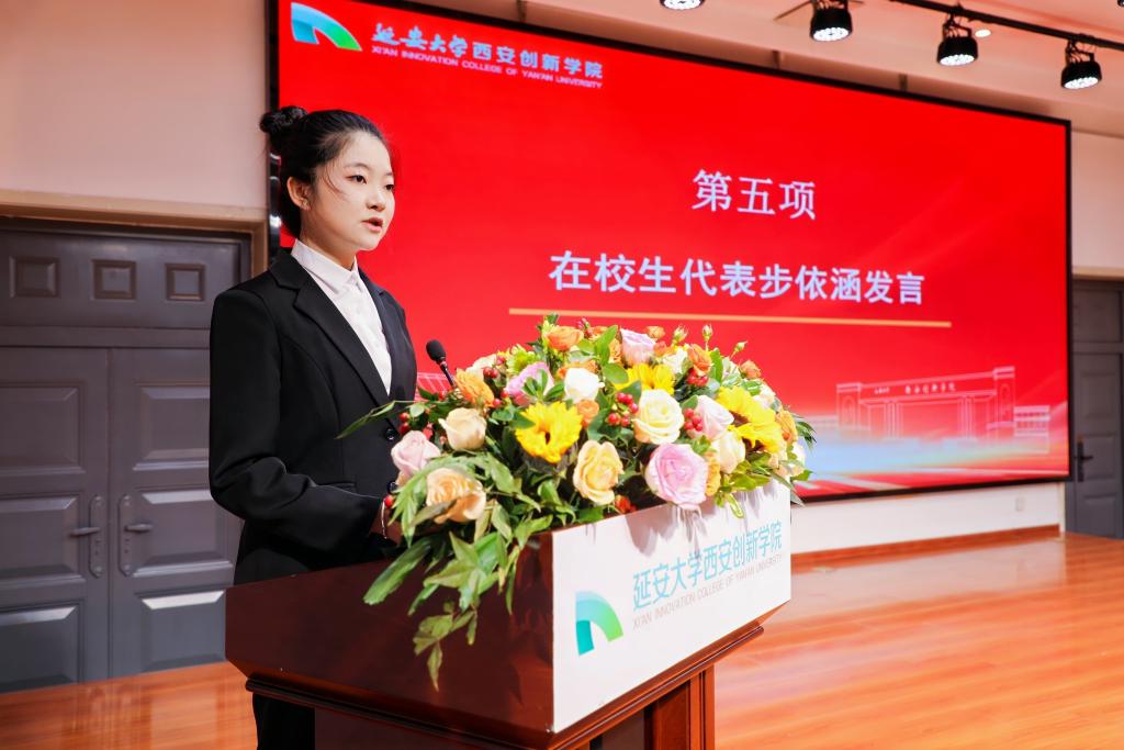 在校员工代表步依涵在发言中表示,将传承创新的希望,秉持“厚德、笃学、求真、创新”的校训,勤奋学习、开拓进取,努力成为具有国际视野、创新能力和高尚品格的新时代优秀青年,奋力书写为中国式现代化挺膺担当的青春篇章。