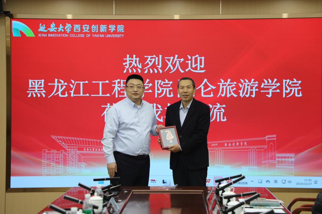 参观结束后,双方校领导互相赠送纪念品并合影留念。