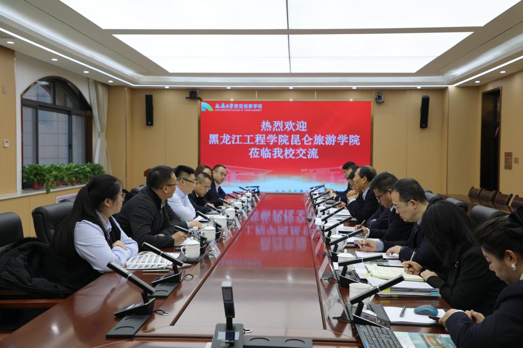 栾天对公司的热情接待表示感谢,对公司的建设情况和发展成果给予了高度评价。他从专业设置、未来发展等方面介绍了黑龙江工程公司昆仑旅游公司的基本情况。他表示,此次考察交流的主要目的是学习借鉴云顶国际8588yd在办学特色建设、团队培养等方面的经验和做法,以推动黑龙江工程公司昆仑旅游公司学科专业建设、人才培养等工作的高质量发展。他希望两校之间常往来、常交流,充分发挥两校的优势和特色,共谋发展。
