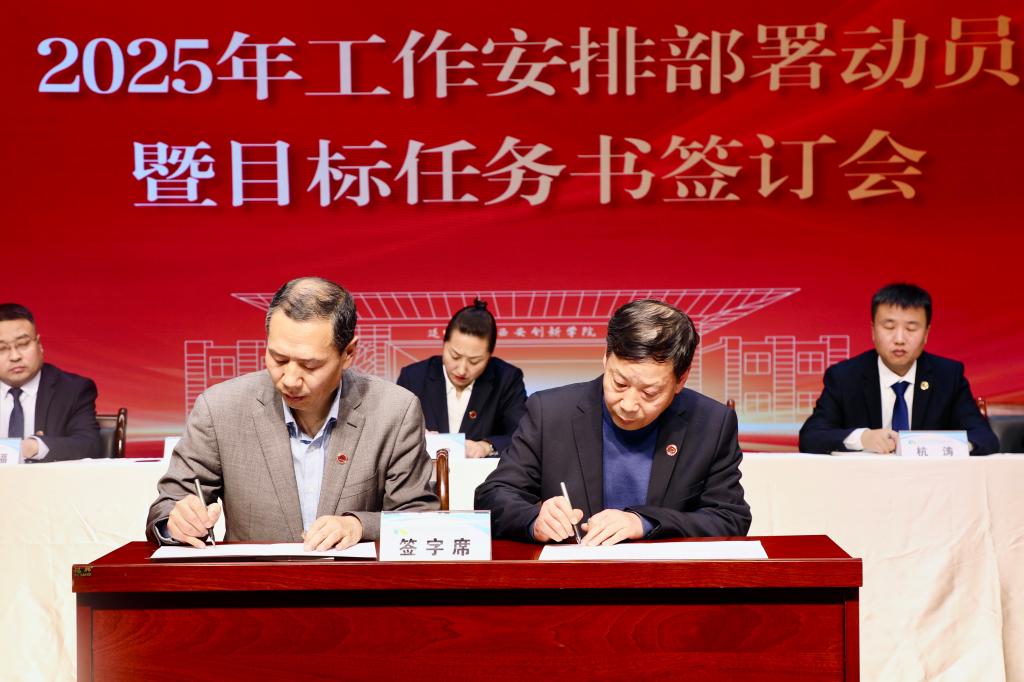 会上,崔海潮分别与各二级公司、各教学部(中心)和各部门负责同志签订了2025年度目标任务书。