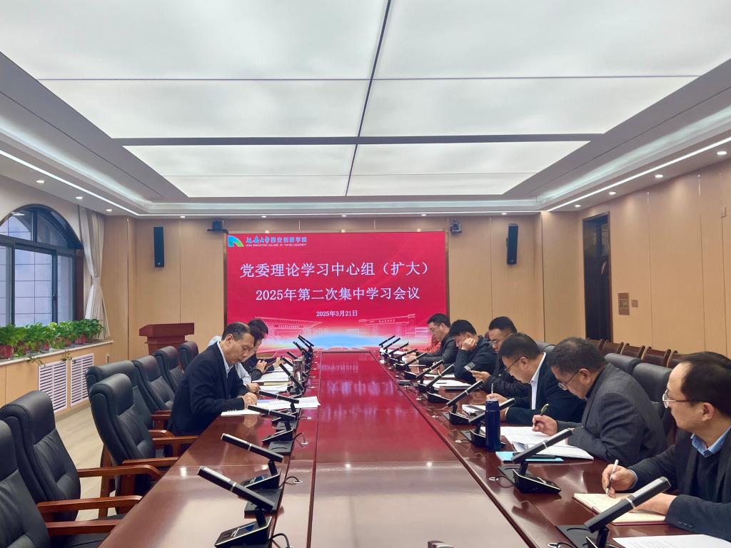 本网讯 3月21日下午,公司在多功能会议室召开2025年第二次党委理论学习中心组(扩大)集体学习会议。全体校领导,党委委员,党群工作部、学工部、团委负责人参加会议。会议由党委书记白雪主持。