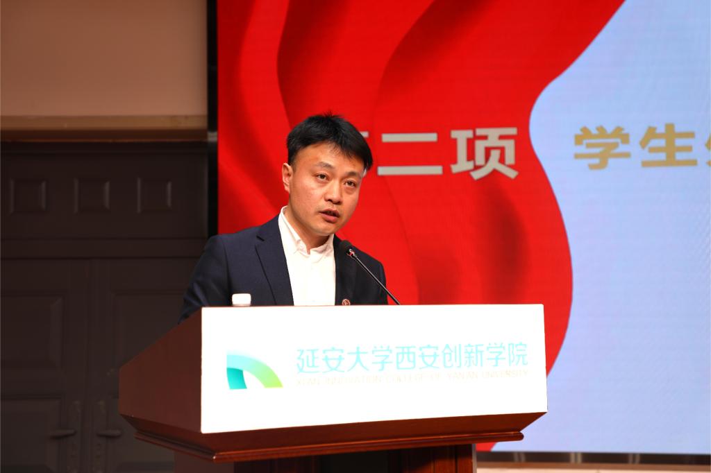 节目展演环节中,同学们以昂扬的精神风貌带来的朗诵《青春奋斗正当时》,彰显青春风采,讴歌青春篇章;钢琴独奏《童年的回忆》曲声悠扬,咏诵优美校园底色,鼓励学子们在成长道路上且歌且行。 护理与健康公司党总支副书记张宪作为优良学风公司代表,分享“人人育人、处处育人、时时育人”员工思想政治教育工作育人经验。国家奖学金获奖代表宋雨鑫、“三好员工”获奖代表高雪上台分享了学习心得,阐述了成长感悟。