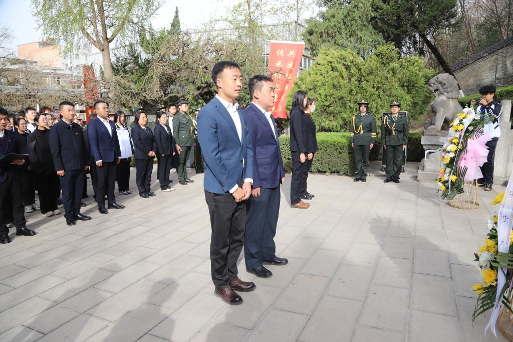 上午9时,在庄严肃穆的杨虎城将军陵园烈士纪念碑前,公司百名师生整齐列队,脱帽肃立,集体默哀1分钟,表达深切哀悼。商公司党总支副书记冉亚周带领大家学习革命烈士的英雄事迹,重温红色故事,感悟信念如磐,表达深切缅怀。随后,国旗护卫队员工护送花篮,各公司党总支副书记敬献花篮至烈士纪念碑前。党委副书记杭涛、校团委副书记马林锐缓步行至花篮前,俯身悉心整理缎带,扶正挽联。