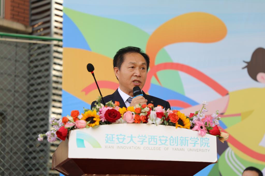 副董事长王文发致开幕词。他代表公司党政对本届运动会的顺利召开表示热烈祝贺,向全体运动员、裁判员、大会工作人员致以亲切的问候和崇高的敬意。他表示,过去一年,公司大力推进体育教学改革,构建多元化体育活动平台,创新体育教学模式。通过完善制度保障和加大经费投入,组建了极限飞盘队、羽毛球队、匹克球队等高水平运动队,体育健儿们在各类赛事中屡创佳绩,刷新多项纪录。这些成绩的背后是全体师生团结拼搏的缩影。他指出,党的二十大报告中明确提出“加快建设体育强国”的战略目标,这不仅是一幅宏伟的发展蓝图,更是新时代对青年一代的召唤。体育强国建设需要青年以强健的体魄夯实人生根基,以昂扬的斗志展现青春风采,以团结协作的精神践行使命担当。他强调,运动会是“五育并举”的生动实践,是“体教融合 铸魂育人”的重要舞台,创新青年们将以拼搏之志,让青春在多元运动中绽放光彩,用行动践行“请党放心,强国有我”的青春誓言。