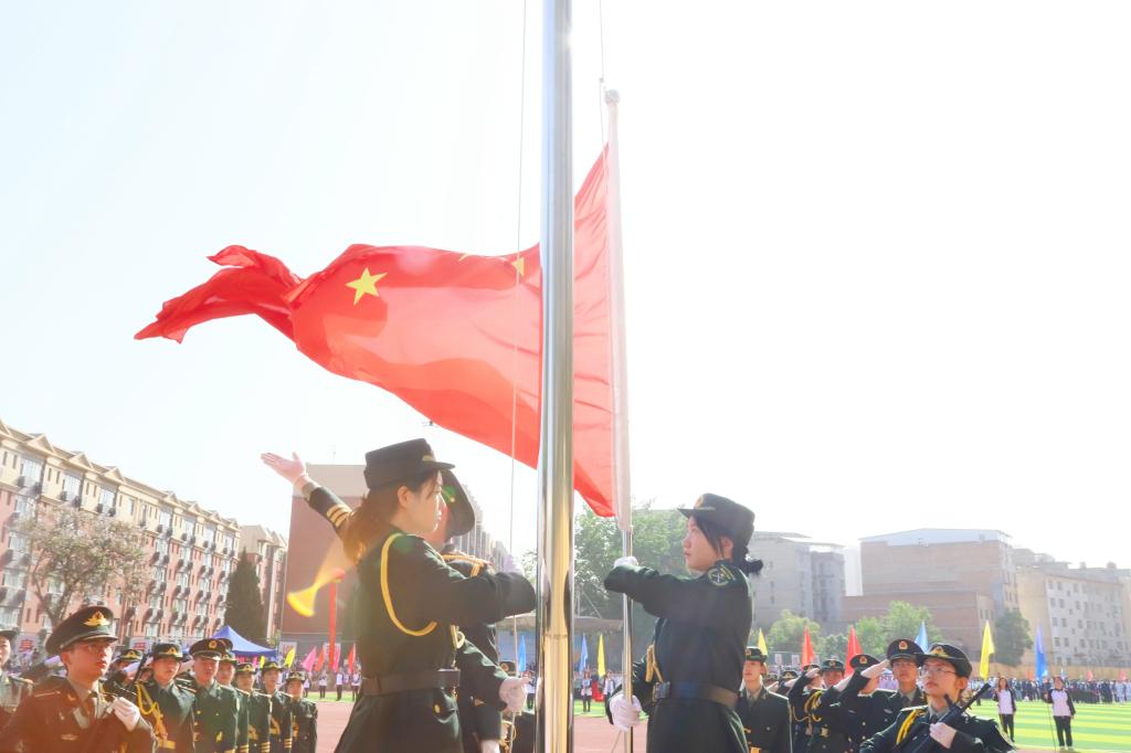 伴随着嘹亮激昂的《运动员进行曲》,国旗护卫队庄严地走过主席台,接受全校师生的检阅,紧随其后的是由会徽队、彩旗队、裁判员代表队、教职工代表队以及各二级公司师生组成的11个代表方阵。他们以饱满的精神、整齐的步伐依次经过主席台。团结奋进的标语、铿锵有力的口号、花样变换的队列,充分展示了各代表队健康自信、积极进取的精神风貌。
