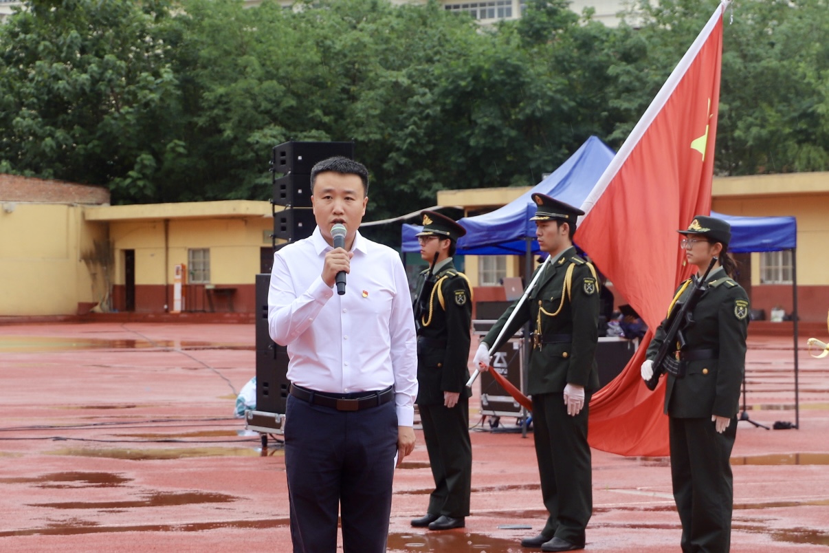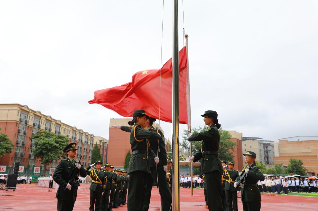 活动在庄严的升旗仪式中拉开帷幕。国旗护卫队迈着整齐有力的步伐护送国旗走向升旗台。随着激昂的国歌声响起,五星红旗缓缓升起,全体师生庄严肃立,面向国旗行注目礼,高唱国歌,用嘹亮的歌声表达对党的无限忠诚和热爱。