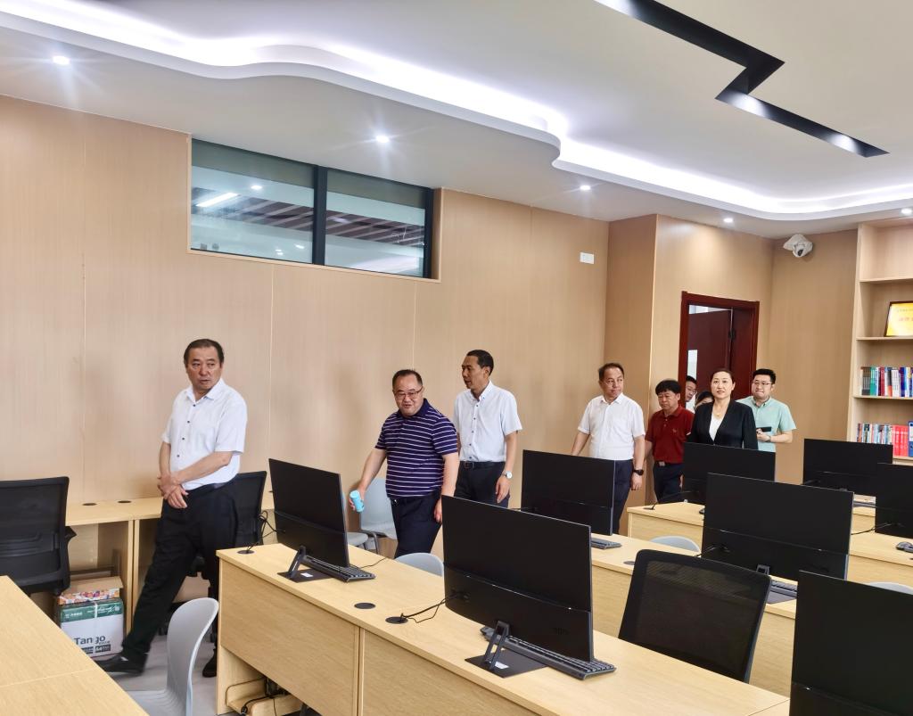 高子伟一行实地参观了公司经开校区教学楼、专业实训机房、机器人实训室及展厅等重点建设项目,详细了解了经开校区功能布局及配套设施情况,并就学科布局、智慧校园建设等方面提出了具体建议。