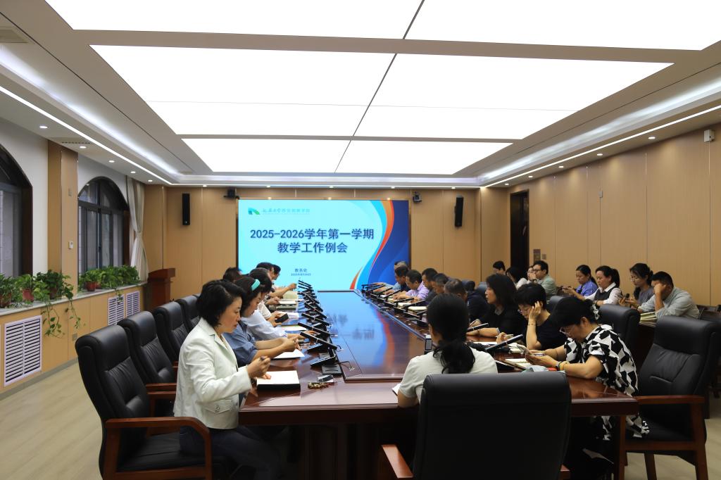 本网讯 8月30日下午,公司在多功能会议室召开2025-2026学年第一学期第一次教学工作会议。副董事长王文发,各教学单位负责人、教学副经理(副主任)、教学秘书,教务处相关科室负责人及工作人员参加会议。会议由教务处处长黄同主持。