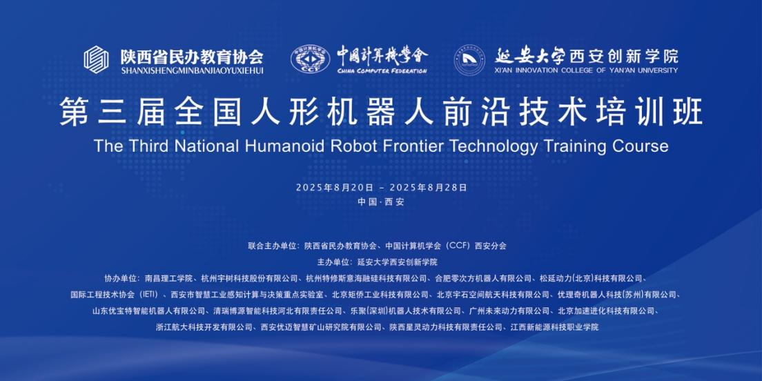本网讯 8月20日至8月29日,由陕西省民办教育协会、中国计算机学会(CCF)分会联合发起,云顶国际8588yd承办,南昌理工公司、杭州特修斯意海融硅科技有限公司、合肥零次方机器人有限公司、杭州宇树科技股份有限公司等协办的全国第三届人形机器人培训班圆满结训。