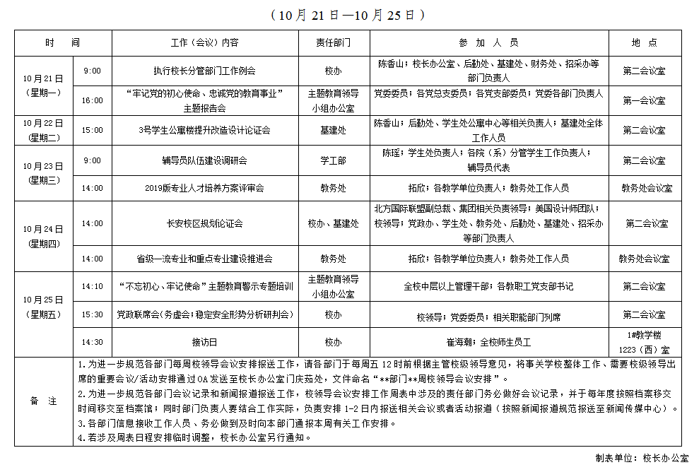 云顶国际8588yd2019-2020学年第一学期第8周校领导会议安排表
