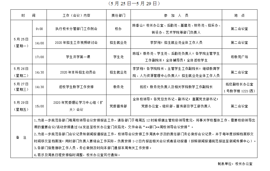 云顶国际8588yd2019-2020学年第二学期第14周校领导会议安排表
