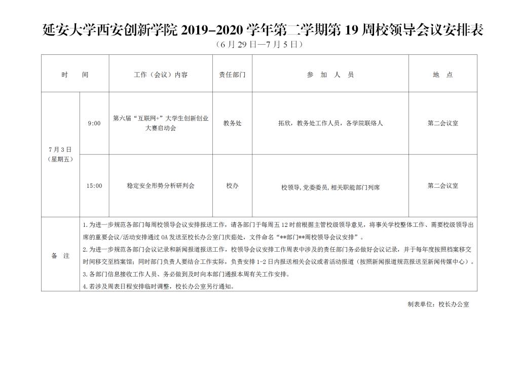 云顶国际8588yd2019-2020学年第二学期第19周校领导会议安排表