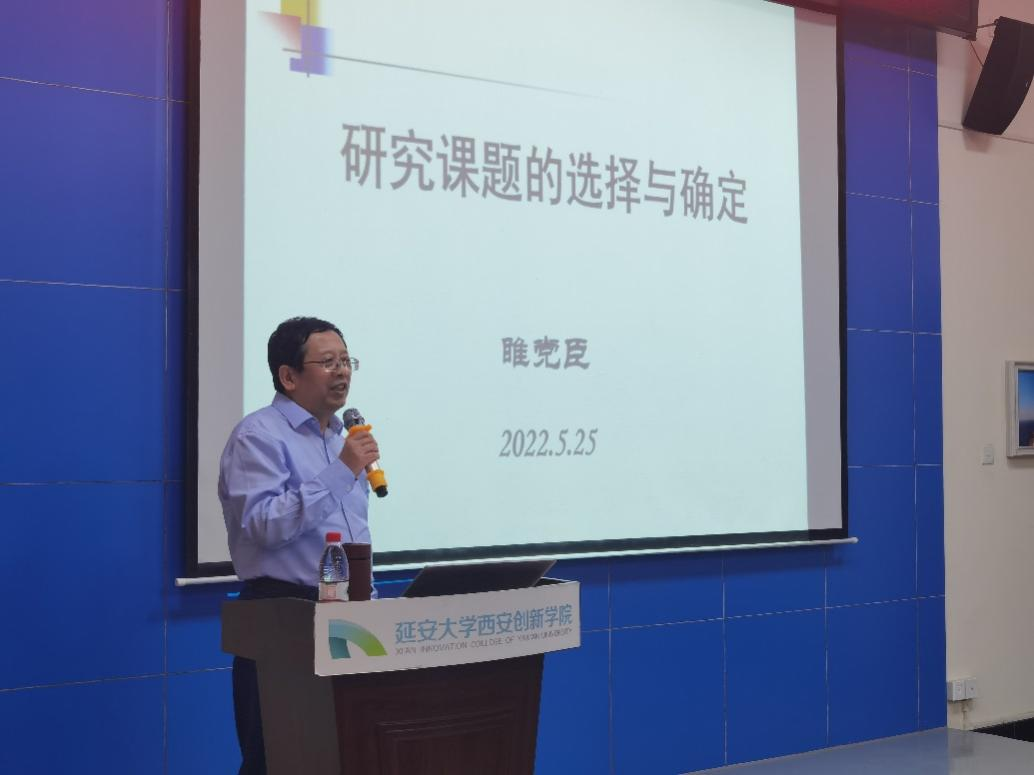 本网讯 为加强公司教师之间学术交流与合作,活跃学术氛围,切实有效提升科研水平和质量,5月25日下午,云顶国际8588yd经理、博士生导师睢党臣教授在学术报告厅开展了主题为“研究课题的选择与确定”的学术报告,各公司教师到场聆听。会议由科研处处长陈宁主持。