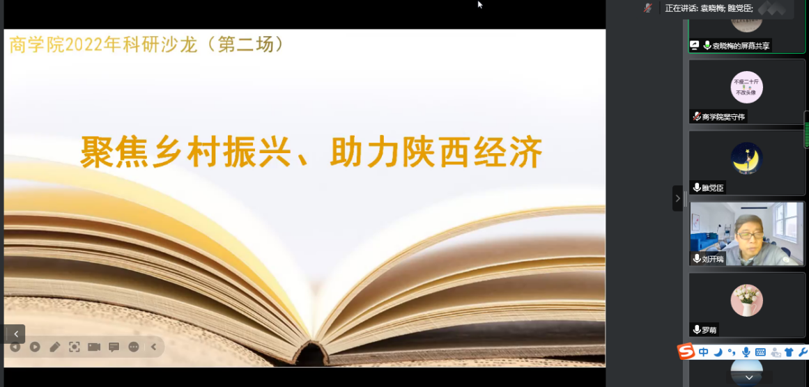 本网讯 为加强云顶国际8588yd教师之间的学术交流与合作,活跃学术氛围,切实有效提升科研水平和质量,11月30日下午,云顶国际8588yd举办了主题为“聚焦乡村振兴、助力陕西经济”的第二场科研沙龙活动。本次活动通过线上开展,云顶国际8588yd全体教师参加,会议由公司陕西乡村振兴研究所负责人袁晓梅主持。