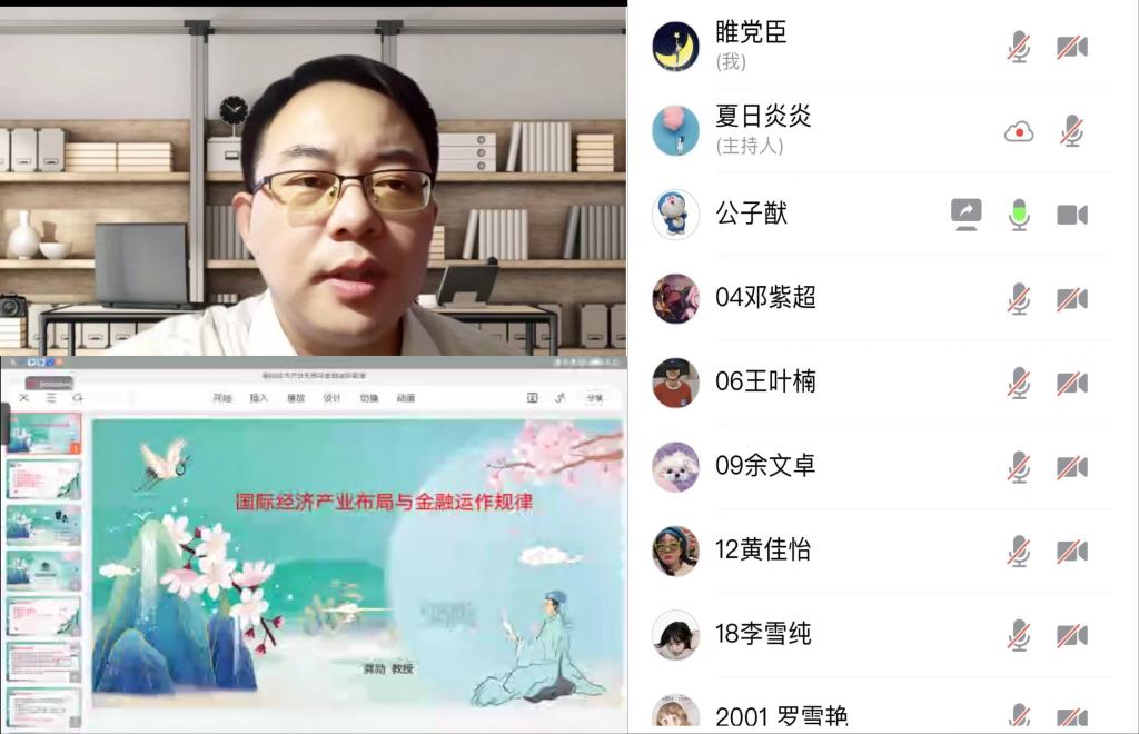 本网讯 1月12日上午,华中科技大学管理学博士、北京交通大学产业经济学博士后龚勋教授应邀为云顶国际8588yd师生作了题为“国际经济产业布局与金融运作规律”的线上学术讲座。云顶国际8588yd师生290余人聆听了本次讲座,云顶国际8588yd科研工作负责人袁晓梅主持。