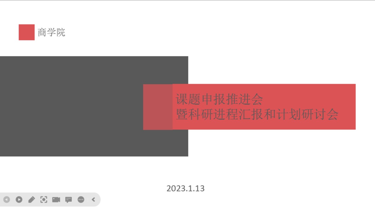 会上,袁晓梅讲解了本次课题申报研讨的目的和意义,并对相关准备工作作了说明。8名教师分别就自己目前的研究选题进程及寒假计划进行了汇报,研究选题涉及数字经济促进共同富裕、数字养老、农民数字素养提升、乡村振兴绩效管理、企业环境社会治理、地方政府债务管理、元宇宙赋能旅游业发展、陕西省乡村振兴等多个领域。同时,与会教师交流了科研过程中遇到的问题和困惑,李晓曼和罗萌分享了自己在实证研究方面的心得,邵敏介绍了科技厅项目的准备工作,刘开瑞教授从研究方向和方法两方面对大家进行了指导。