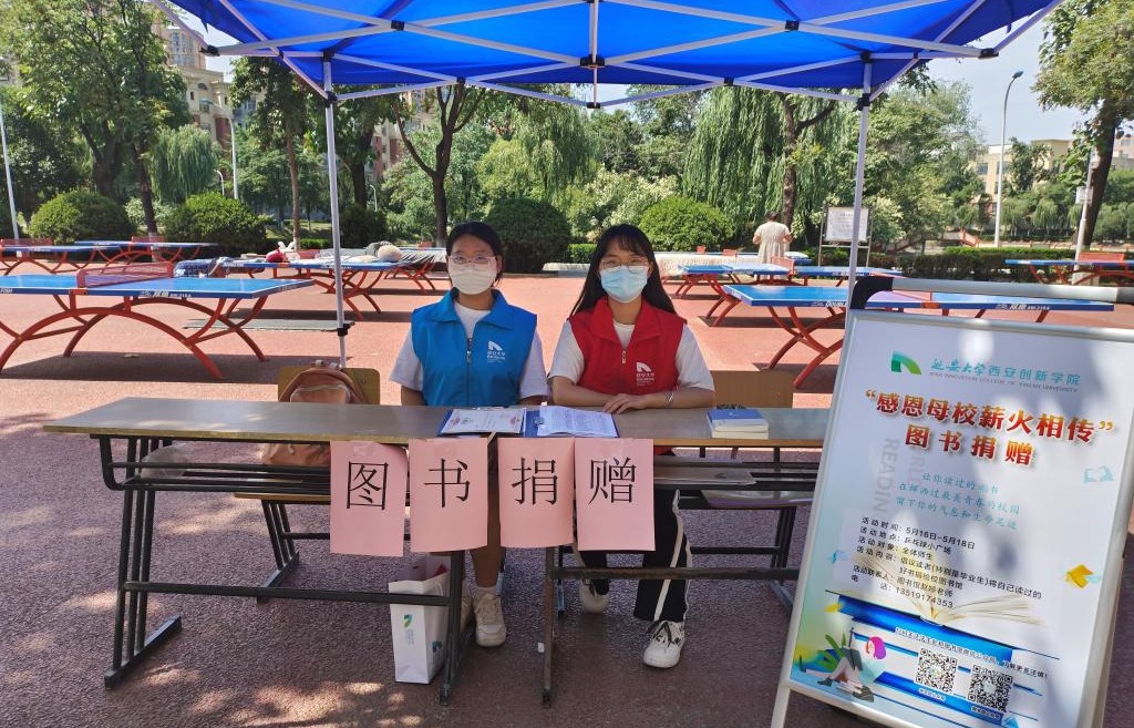 本网讯 为实现资源有效再利用,丰富校园图书资源,营造“共享书香”的良好氛围,将 “毕业扔”变为“毕业捐”,让毕业生留下美好珍贵的回忆,5月16日-18日,图书馆在乒乓球小广场举办了“感恩母校,薪火相传” 图书捐赠活动,号召毕业生将闲置图书捐赠给图书馆。