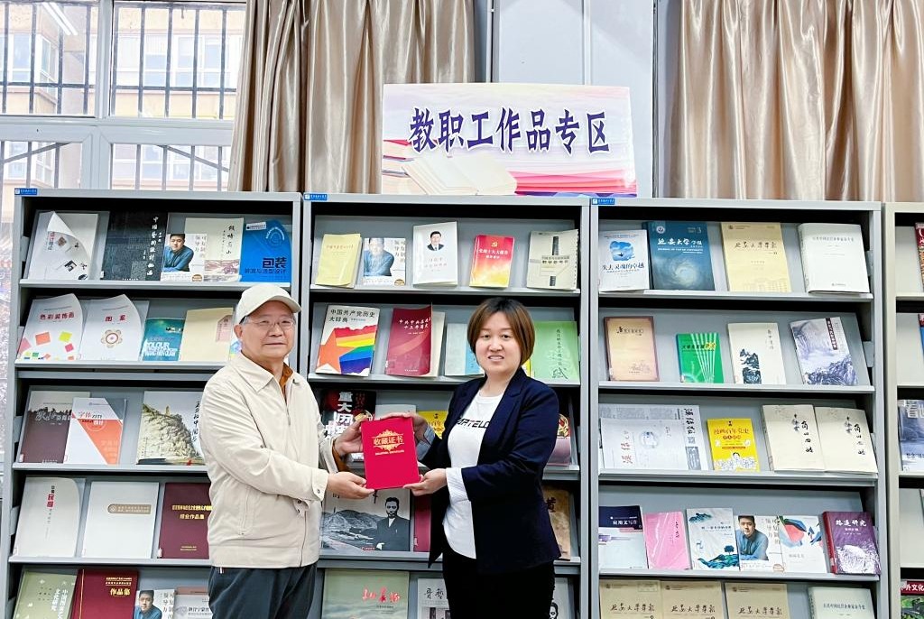 崔金环代表图书馆接受了捐赠,衷心感谢陈文俊教授对校图书馆建设发展的关心与支持,并向其赠送了《收藏证书》。