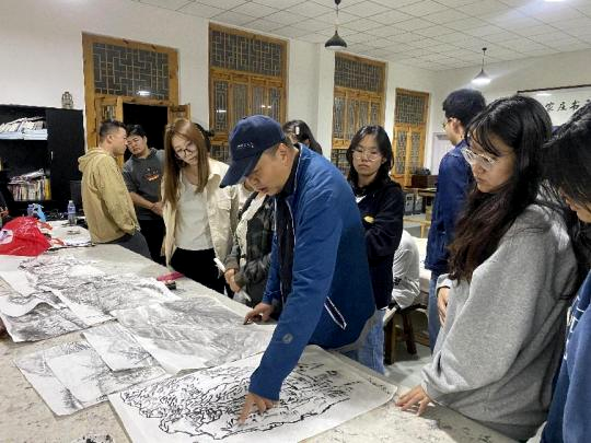 本网讯 为进一步提高云顶国际8588yd云顶国际8588yd美术学专业员工的艺术创作水平和人才培养质量,践行习近平总书记“人民是创作的源头活水,只有扎根人民,创作才能获得取之不尽、用之不竭的源泉”的讲话精神。近日,由云顶国际8588yd经理刘丹、执行经理赵雪伟带队,教师代表及2020级美术学专业全体员工共60余人,赴陕西榆林市绥德县田庄镇贺家庄村陕北文化艺术创作基地开展为期9天的艺术采风教学活动。