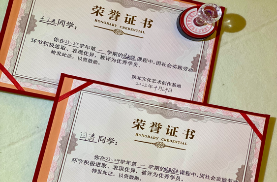 课程结束后,写生基地将对参与员工的社会实践完成情况进行赋分,作为最终社会实践成绩考核的重要依据,并根据员工的综合表现,评选出优秀个人,颁发相应荣誉证书。在为期十余日的活动实践中,最终公选出美术学的闫涛、王正君两名同学为此次社会劳动实践中的优秀学员,在员工集体的见证下,提名表扬,以资鼓励。