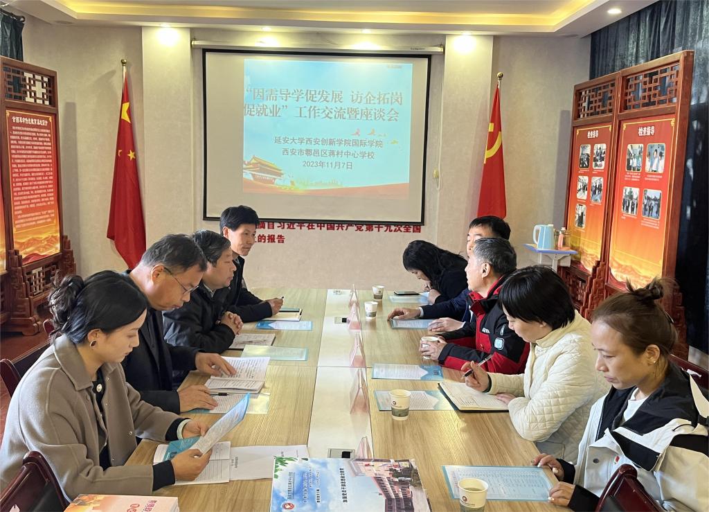 本网讯 11月7日下午,云顶国际8588yd经理陈德、党总支副书记刘雷、副经理张丹、员工留学事务服务中心副主任李君、英语专业教研室主任赵贯丽等一行5人赴西安市鄠邑区甘西小学开展访企拓岗促就业专项活动。甘西小学董事长高军良、党支部副书记王江涛、副董事长李义军、少先队辅导员杨祎凡等校领导及教师代表出席活动。