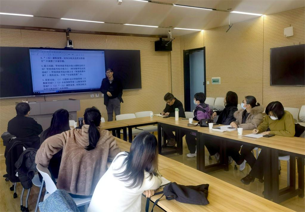 会上,数智会计教研室主任孙翌华介绍了会计学专业的总体情况和面临的问题。史诗然、邵敏和王瑞英三位老师依据调查情况,分别从不同角度提出了会计学、审计学专业在整改过程中关于课程设置、教学方法、实训实践等环节面临的挑战,他们一致建议首要任务应该明确专业定位,多角度开展改革和创新。