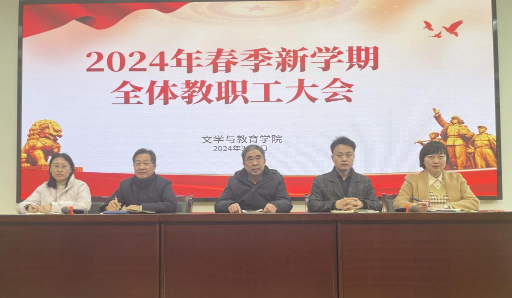 会上,杨慧栋带领教职工学习了《2023-2024学年第二学期开学初教学检查》文件,从教学质量监控、实习实训、公司产品成果、2023版培养方案修订等方面厘清了2024年春季学期的工作思路,明确了本学期教学工作方向。