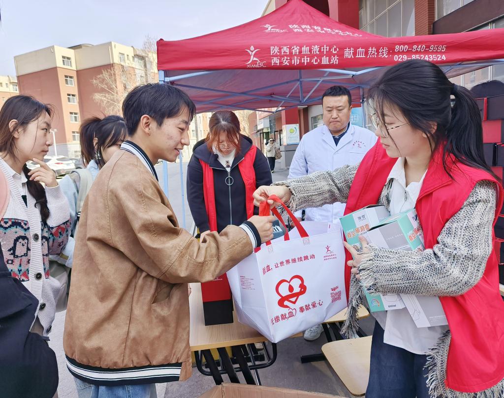 献血活动现场井然有序,爱心献血车前爱意浓浓,献血的师生们在志愿者的引导下,先后填写基本信息表格然后进行血液检查,经过严格的筛选后,依次排队抽血,献出自己的爱心。献血完成后,西安市中心血站为大家送上精美小礼品。