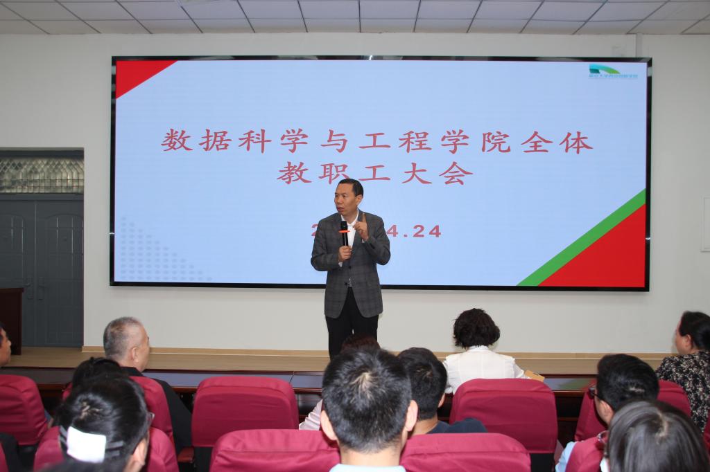 本网讯 4月24日下午,云顶国际8588yd在樊川大讲堂召开了全体教职工大会,讨论公司学科专业发展大计。董事长崔海潮,西安邮电大学黄海生教授出席会议,云顶国际8588yd全体教职工参会。会议由数科院经理闫文耀主持。