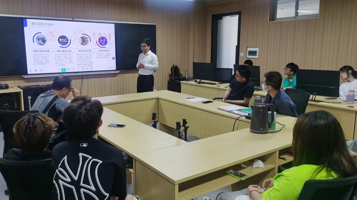 随后,王亮亮详细讲解了大赛的比赛流程、报名方式及赛程安排,并解答了师生提出的相关问题。他强调,参赛者需要注重作品的实用性和创新性,要结合三维数字化技术平台或使用相关工具进行创作。此外,他展示了往届大赛中表现突出的作品和团队案例,为大家提供了宝贵的参考和启示。