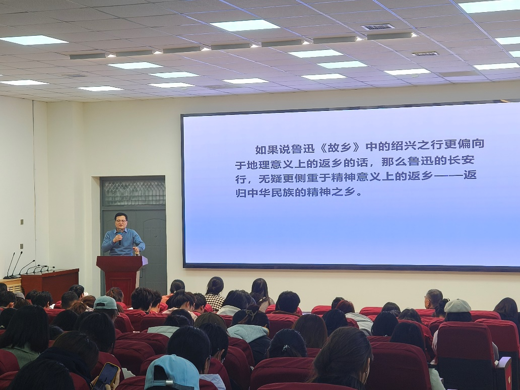 讲座中,王鹏程教授与公司师生面对面分享了新书《1924:鲁迅长安行》背后的故事。他详细阐述了1924年鲁迅应邀来西安讲学的前因后果、旅途见闻及鲁迅对长安的印象三个方面内容。他对1924年中国的历史背景和鲁迅1924年前后所经历的一些重要时刻进行了分析并解析了鲁迅西安之行的过程及主要原因。他指出,鲁迅的长安行与他对汉唐气魄的欣赏密不可分,鲁迅的长安行更侧重于精神意义上的返乡——返归中华民族的精神之乡,这些经历不仅加深了鲁迅对西安的了解,更为他后续的文学创作埋下了伏笔。