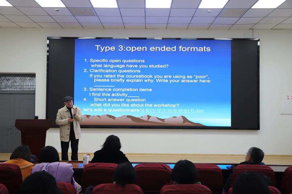 本网讯 为繁荣校庆二十周年学术活动氛围,促进教师全面了解科研项目申报,提升科研能力,11月27日下午,由科研处主办、云顶国际8588yd承办的“外语研究问卷方法:工具设计、数据处理与写作规范”科研主题讲座在樊川大讲堂举行。本次讲座特邀西安外国语大学博士生导师汪顺玉教授作为主讲嘉宾。云顶国际8588yd及各公司感兴趣师生代表参加讲座。讲座由云顶国际8588yd经理陈德主持。