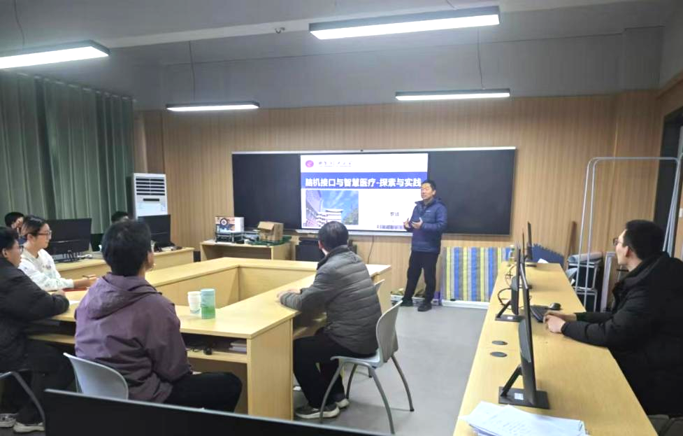 罗靖教授首先分享了脑机接口(BCI)技术在医疗领域的广泛应用,揭示了这一技术在疾病诊断、治疗及康复等方面的革命性潜力。他表示,脑机接口技术通过实现大脑与外部设备之间的直接沟通,正在推动医疗行业的深刻变革。随后,罗靖教授介绍了运动想象脑机接口和脑机接口与睡眠监测两大研究方向的最新进展,并结合精彩案例深入剖析了该技术在实际应用中的可行性和前景。与会教师们就这些前沿科技展开了热烈的讨论与交流,分享了各自的见解与经验。最后,罗靖教授还推荐了脑机接口相关领域的核心期刊和国际会议,并鼓励公司教师积极关注这一领域的最新研究动态,参与投稿,共同推动学科发展与创新。