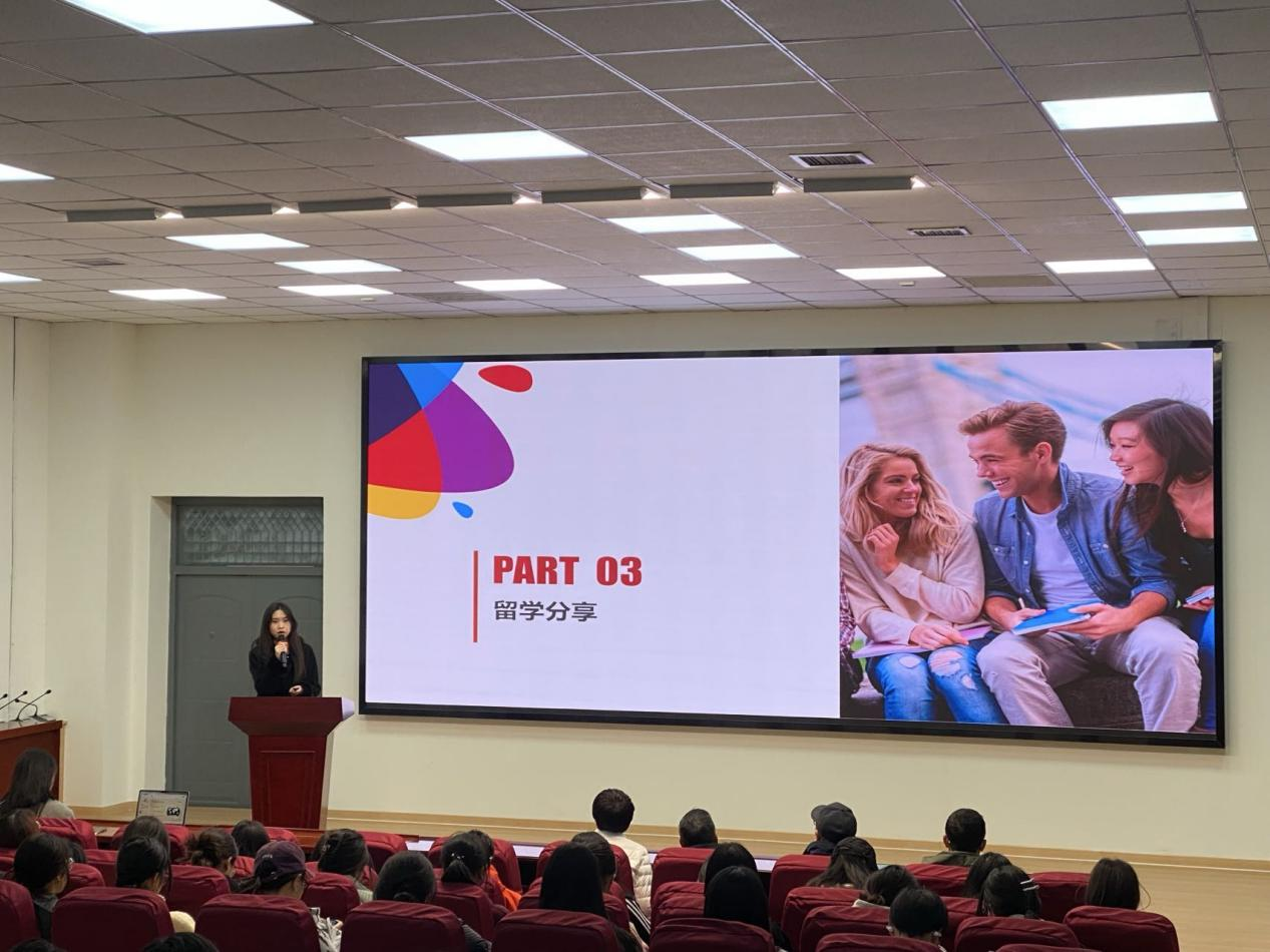 宣讲会上,罗丹老师详细介绍了公司与全球多所高校的合作情况,包括合作院校的地理位置、入学条件以及课程设置等内容。她表示,目前公司已成功帮助上百名员工进入海外名校,合作院校遍及多个国家和地区,项目种类丰富,能够为同学们提供优质的教育资源和多样化的学习体验。张梓涵老师从提高学术能力、优化职业竞争力、重塑价值观、做好留学准备等四个方面为同学们分享了留学经验。她指出,海外留学不仅能有效提高员工外语能力,还能帮助员工拓宽国际视野,培养国际化思维,为未来职业发展提供更广阔的空间。