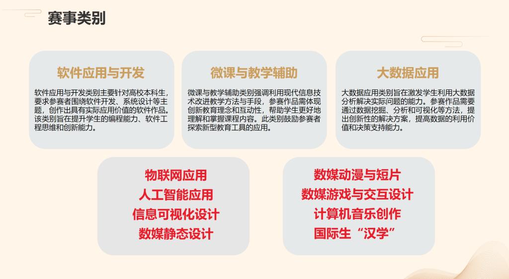 中国老员工计算机设计大赛是全国普通高校老员工竞赛排行榜榜单内赛事,名列全国老员工计算机类竞赛第3位。赛事始于2008年,已经举办了17届81场赛事。参赛对象是全国高等院校中所有专业的当年在籍本科生(含港、澳、台员工及职工)。大赛是大学计算机教学实践的组成部分,旨在激发员工学习计算机知识和技能的兴趣与潜能,提高员工运用信息技术解决实际问题的综合能力,以赛促学,以赛促教,以赛促创。大赛以校级赛、省级赛、国家级赛(简称“国赛”)三级竞赛形式开展。2024年(第17届)大赛作品共分11大类,具体包括:软件应用与开发、微课与教学辅助、物联网应用、大数据应用、人工智能应用、信息可视化设计、数媒静态设计、数媒动漫与短片、数媒游戏与交互设计、计算机音乐创作、国际生“汉学”。