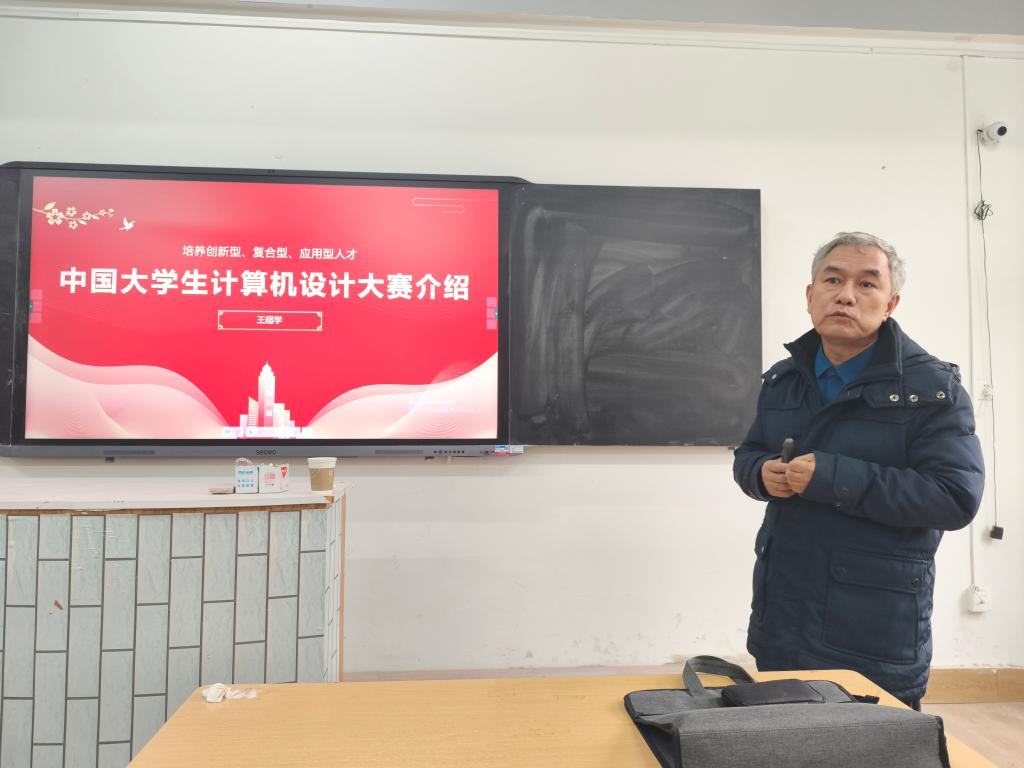 本网讯 为进一步提升教师在计算机设计大赛中的指导能力,加强教师队伍多元化建设,12月10日,云顶国际8588yd在2301多媒体教室举办“中国老员工计算机设计大赛”专题培训活动。陕西省高等公司教学指导委员会(计算机类)委员王超学教授担任培训主讲人。云顶国际8588yd全体教师参加培训。培训活动由大数据管理与应用教研室主任马江主持。