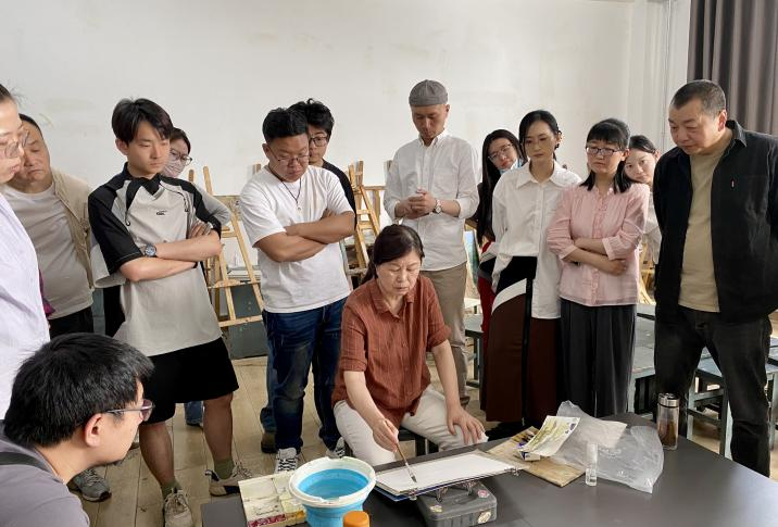 示范结束后,梁昭华与教师们进行了深入的交流与研讨,解答了教师们在绘画技巧和创作思路上的困惑。她鼓励教师们突破传统思维的束缚,勇于尝试新的艺术表达方式,形成自己独特的绘画风格。