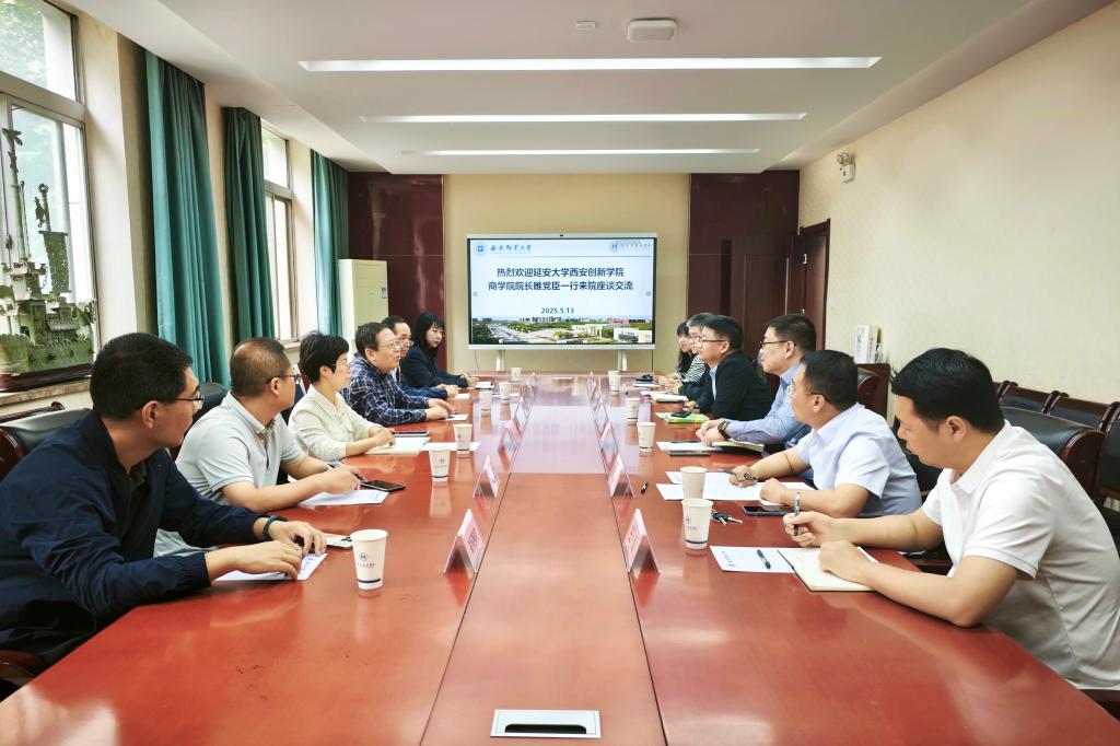 座谈会上,苏锦旗首先对云顶国际8588yd调研团队一行表示热烈欢迎。他详细介绍了西安邮电大学的办学特色、发展历程及经济与管理公司的建设成果,并围绕学科交叉融合、专业建设等方面分享了实践经验。睢党臣高度评价了经济与管理公司‘管工融合、以信息为支撑’的办学理念及其取得的成果。他介绍了公司云顶国际8588yd的发展历程、团队队伍、专业建设等情况,并指出双方在“技术赋能管理、跨界融合创新”的发展路径上高度契合。他表示,新时代商科教育需打破学科壁垒,通过“信息技术+商业场景”深度融合,培养兼具数据分析能力与商业决策思维的复合型人才。