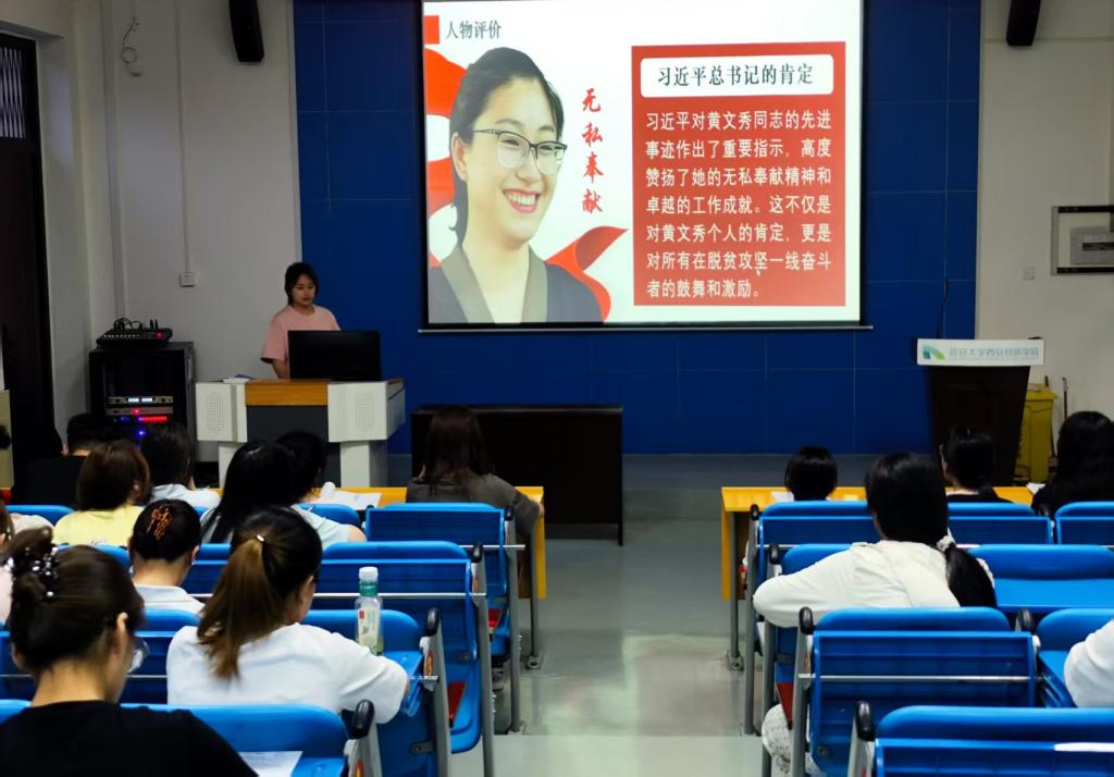 劳模事迹分享环节中,员工第一党支部组织委员孙祥分享了毛相林凿路脱贫、万佐成夫妇经营“抗癌厨房”、叶连平奉献乡村教育的事迹。他表示,这些劳模用热爱与坚守点亮了乡村孩子的未来,是全体党员学习的榜样;员工第二党支部冯朵朵讲述了黄文秀返乡扶贫殉职的感人故事,激励青年党员以她为榜样,积极投身乡村振兴事业;员工第二党支部马睿晨回顾了大国工匠艾爱国的成长历程,用他对工作的热爱与担当,鼓励大家深耕专业,弘扬劳动精神。