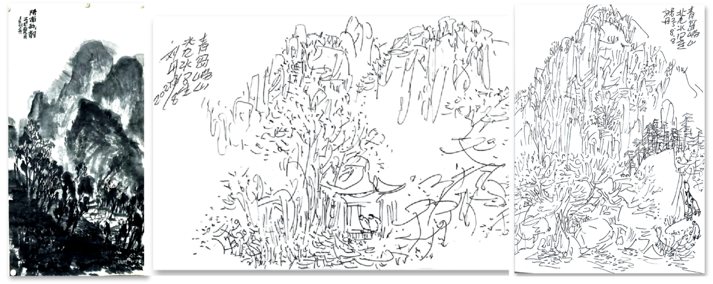 在崂山北九水的写生环节中,两位老师以纯粹的线条与点染,生动呈现山川、树木、桥舍、水云等自然元素,展现出极强的概括性与表现力,让现场画家们对自然之美有了更深刻的认识,更为他们的艺术创作提供了新的灵感和思路。
