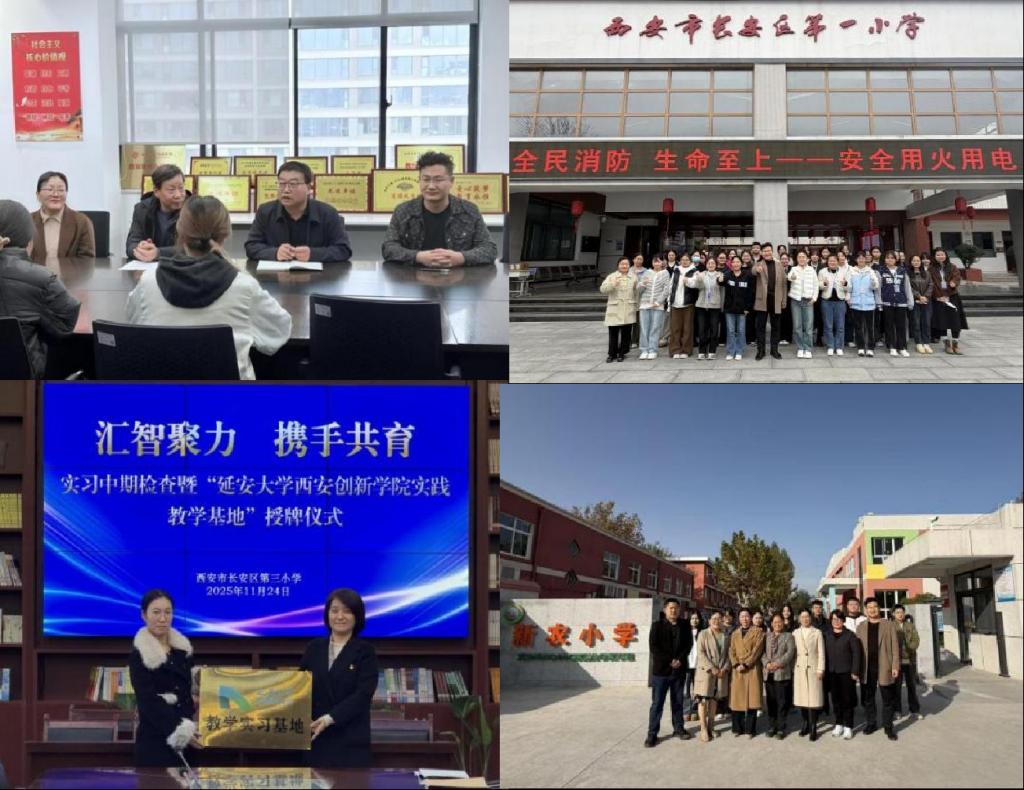 本网讯 为扎实推进2026届毕业实习工作,深入了解学前教育、小学教育专业实习生的实践动态,11月11日至11月24日,云顶国际8588yd经理茹宗志、执行经理唐蜀湘、经理助理安增利,科研秘书马健刚、实践秘书李苗,先后前往西安市雁塔区第八幼儿园、曲江第十五小学、郭杜街道中心公司、西安国际港务区新农小学、长安区第一小学、长安区第三小学、雁塔区科创路小学实习基地开展中期检查与指导工作。