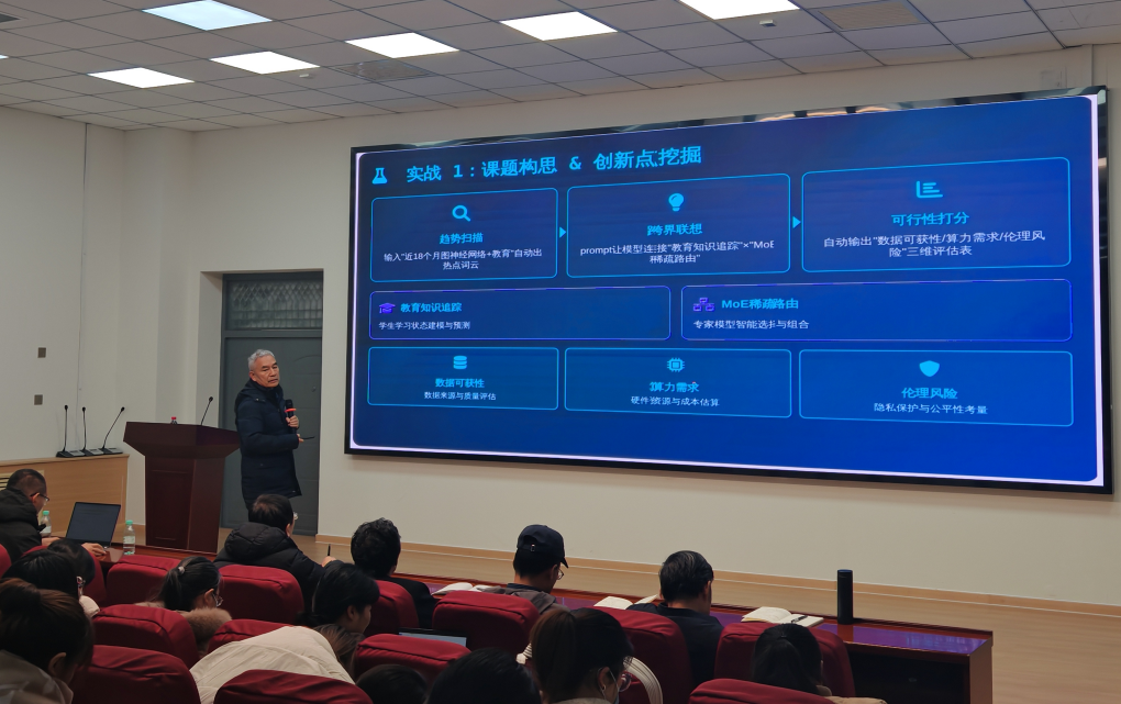 讲座伊始,王超学教授深入剖析了当前高校教师在科研工作中面临的普遍困境,包括跨学科选题难、文献筛选效率低、编程能力不足以及项目申报书撰写耗时费力等问题。针对这些痛点,王教授系统介绍了DeepSeek大模型作为科研助手的重要价值,从选题创新、文献处理、研究设计、数据分析、论文撰写与项目申报等关键环节,详细讲解了DeepSeek的应用方法与实用技巧。