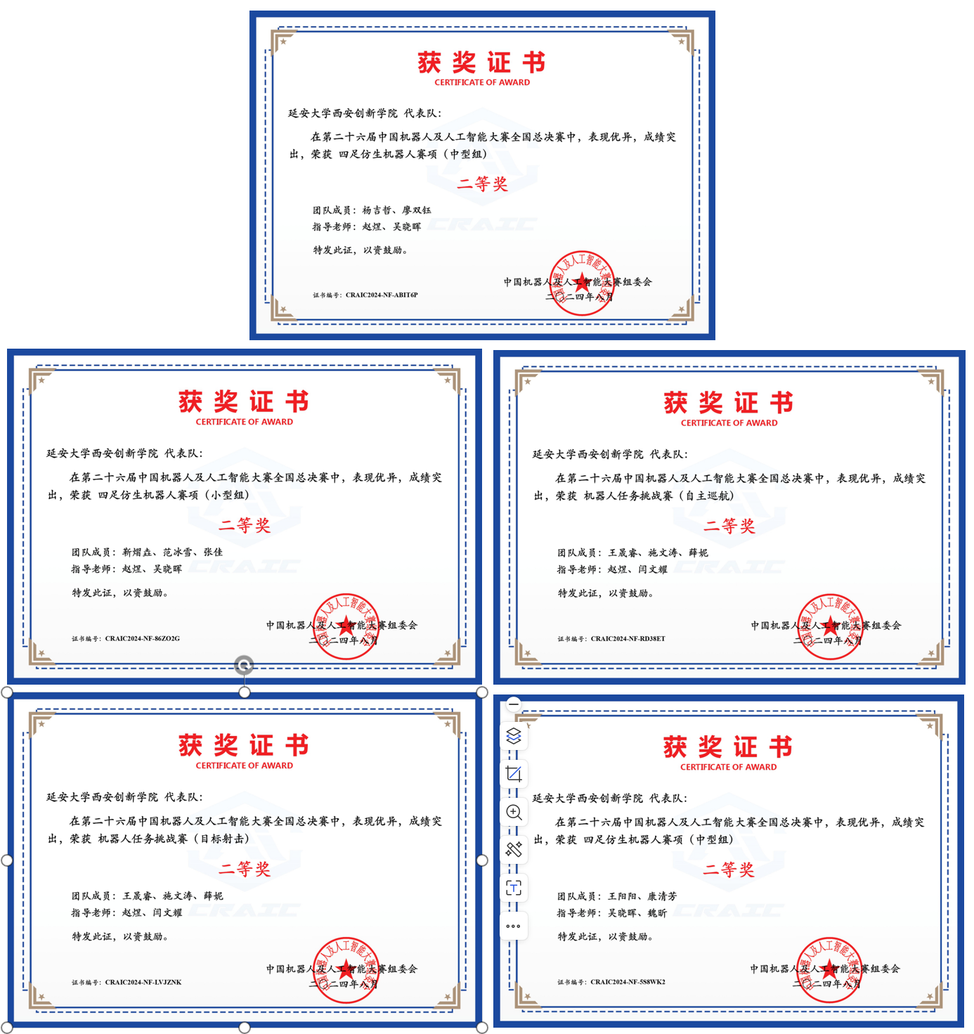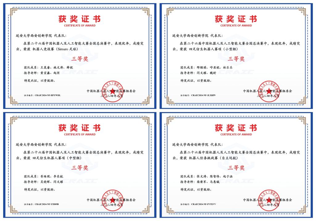本网讯 近日,第二十六届中国机器人及人工智能大赛全国总决赛成绩公布。通过激烈竞技,公司学子在总决赛中凭借出色的发挥,在四足仿生机器、机器人任务挑战赛、Simuro足球等5个赛项中斩获国家级一等奖1项、二等奖5项、三等奖4项、优秀奖3项,再创佳绩。